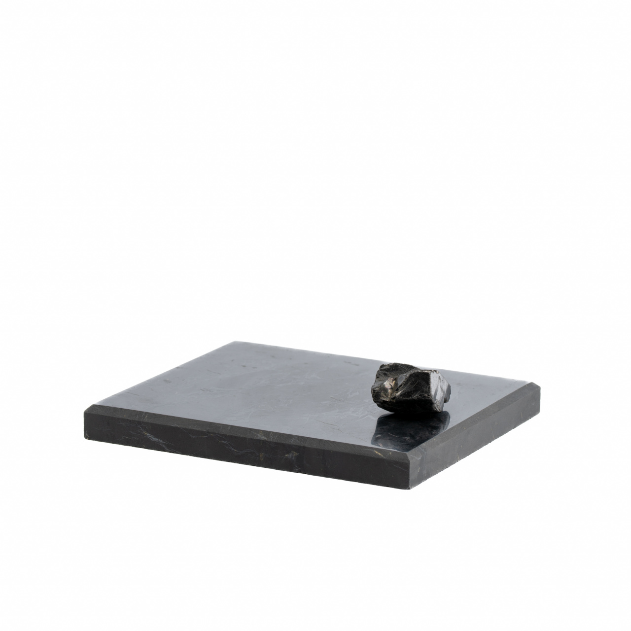 Декоративная плитка из полированного шунгита обладает приятной текстурой, которая успокаивает человека. Может использоваться для творческих целей, в качестве подставки или пресс-папье.