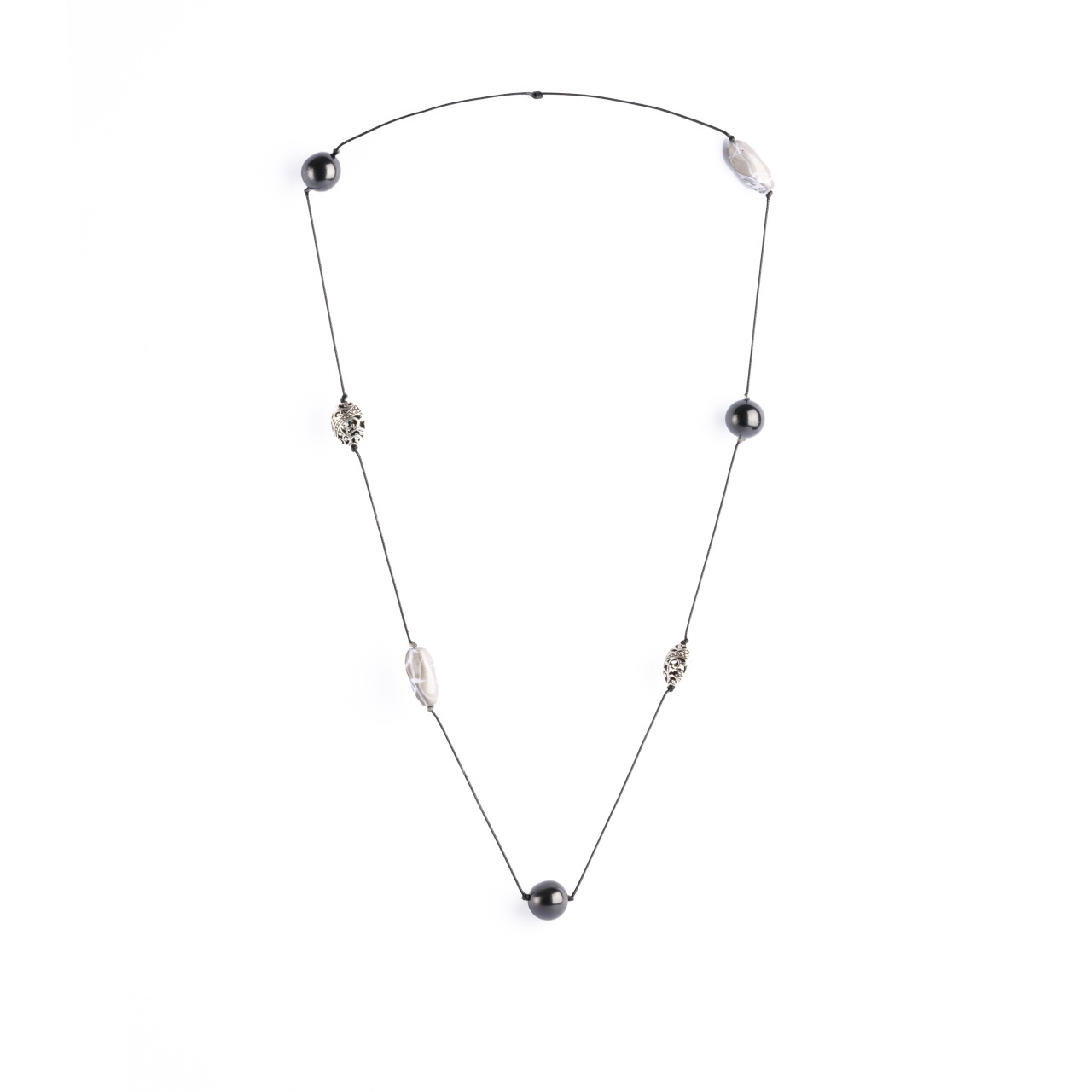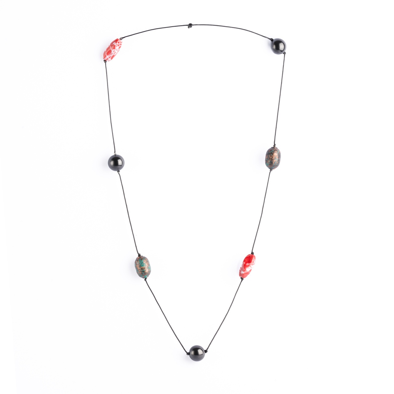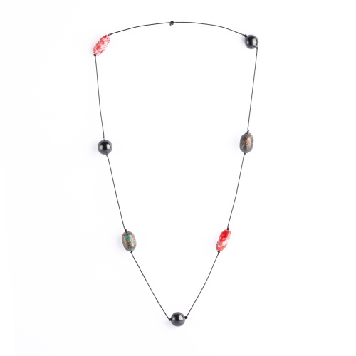 В бусы вплетены несколько бусин из шунгита, а так же различные декоративные вставки из других материалов (пластик, дерево, бижутерный сплав).